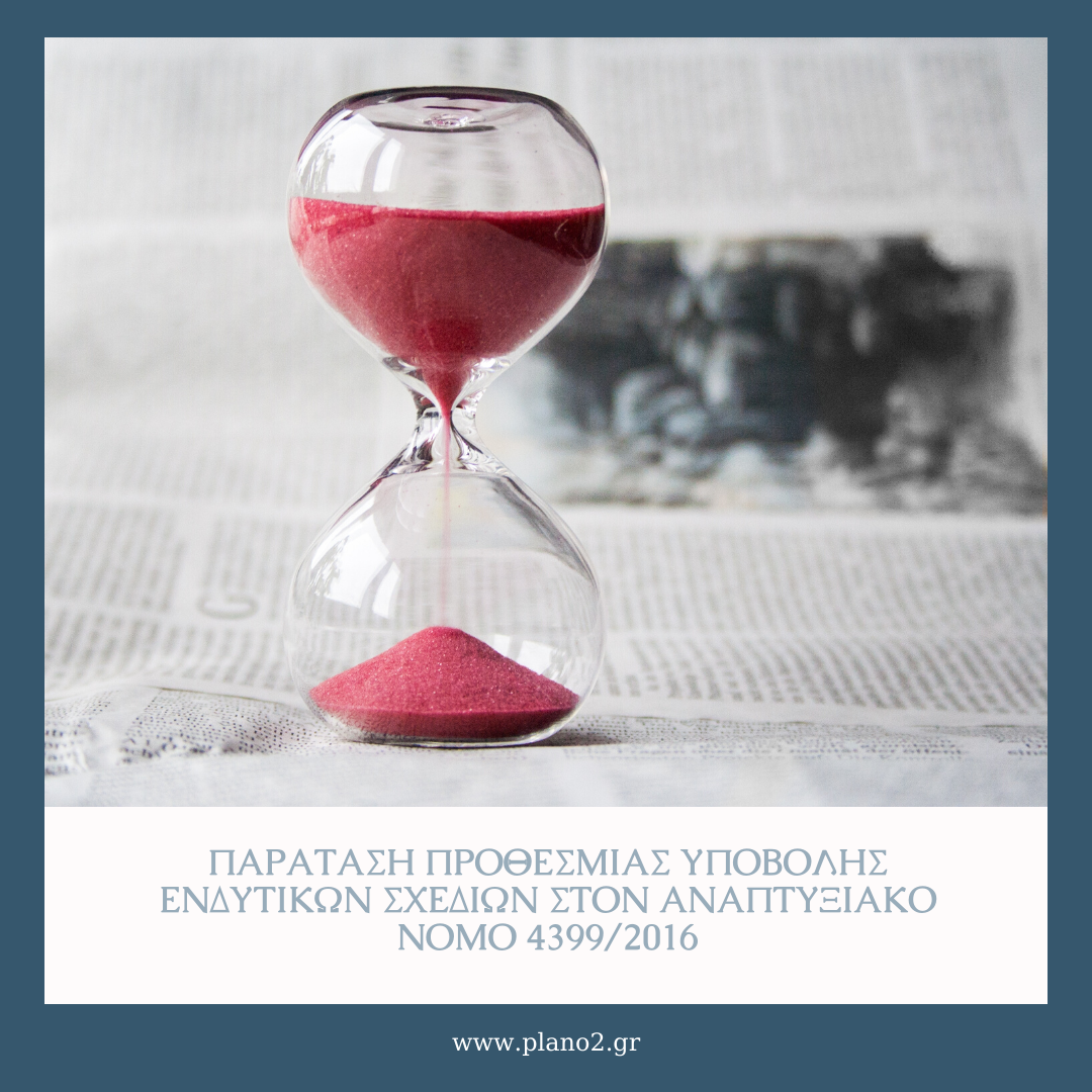 Παράταση προθεσμίας υποβολής επενδυτικών σχεδίων στον Αναπτυξιακό Νόμο 4399/20162020-02-19T15:07:59+03:00
